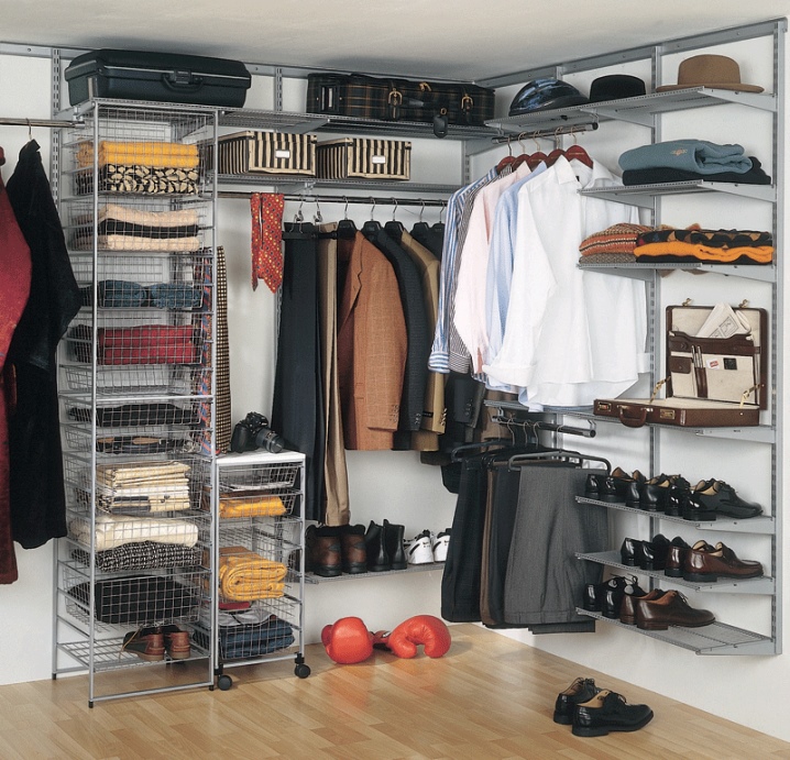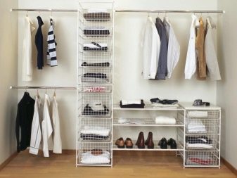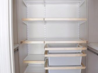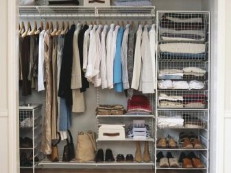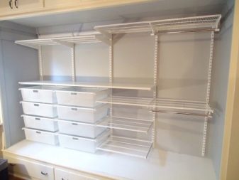 Всяка жена мечтае нейният гардероб да се състои от много чифтове обувки, но когато една мечта се сбъдне, просто няма къде да съхранявате обувките. Издърпващите се стелажи за обувки в гардеробите на Elfa са един от основните елементи. Имате възможност да настроите рафтове в няколко реда и да съхранявате всичките си обувки там. Тези рафтове са чудесни за сушене на обувки, тъй като са изработени от метална мрежа.