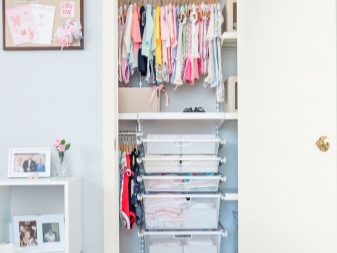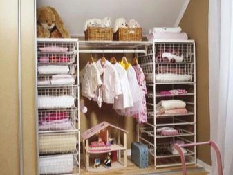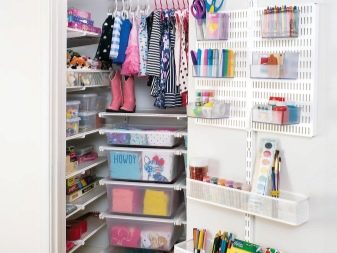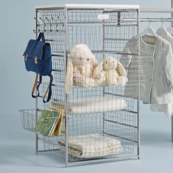 Ако съблекалнята ви е направена, като се вземе предвид съхранението на детски вещи, тогава кошниците са незаменим елемент. В тях могат да се премахват различни играчки, което ще спести място в детската стая и ще я поддържа в ред..