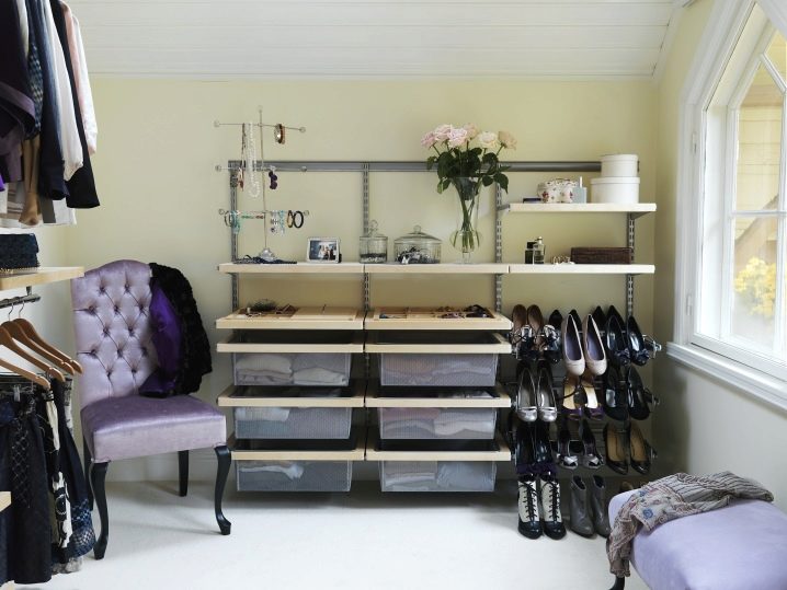 Ако повечето ви обувки са на токчета, тогава можете да изберете специални рафтове за тях..