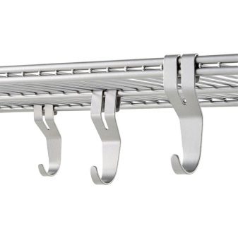 Куките в гардероба на Elfa са универсални, тъй като можете да закачите абсолютно всичко върху тях. Броят на куките може да бъде напълно неограничен. Благодарение на сигурното и дискретно закопчаване имате възможност да съхранявате дори най -тежките неща върху тях. Размерите на куките също варират от много малки до много големи.