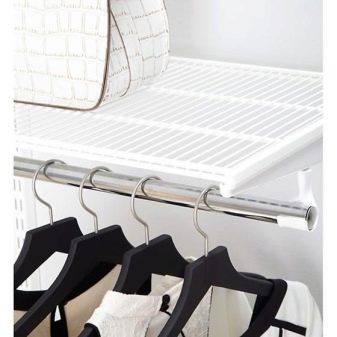 Издърпващите се закачалки ви позволяват удобно да окачите дрехи и бързо да намерите това, от което се нуждаете.Ако размерът на гардероба позволява, тогава можете да инсталирате няколко такива закачалки, включително за връхни дрехи..