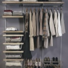 Както знаете, ПДЧ материалът се използва широко за производството на различни видове мебели и е добър заместител на естественото дърво. Ако съставът на вашия рафт не е принципен за вас, тогава може да направите избор в полза на гардеробната система Elfa с ПДЧ Egger. Следователно всички материали са добре обработени използването на рафтове с декор от ПДЧ няма да повлияе на естетиката на вашия гардероб.