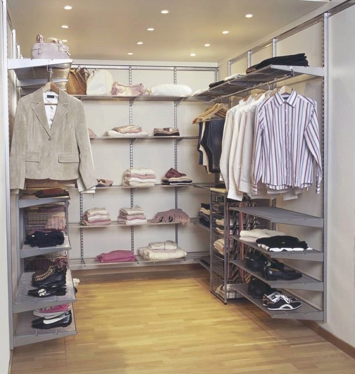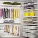Отделна съблекалня е чудесна възможност да освободите апартамента си от обемисти и неудобни гардероби. Понякога един килер не е достатъчен, за да побере дрехите и обувките на голямо семейство. Гардеробните системи Elfa ви позволяват сами да изберете размера на конструкцията и състава на гардероба. Можете да добавите нови подробности към пространството по всяко време, ако е необходимо..