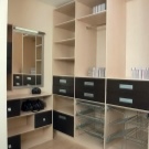 - Панел. Принадлежат към бизнес класа. Панелната система е скъпа и изглежда луксозна. За него се използват специални панели, които са прикрепени към стената, а на панела са монтирани рафтове, кутии, пръти и други елементи. Основното предимство на панелната система е нейното единство. Няма прегради, няма прегради между рафтовете и всички линии в системата са успоредни една на друга. Такава съблекалня перфектно скрива неравни стени..