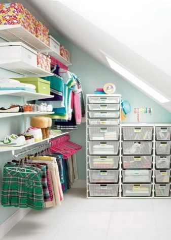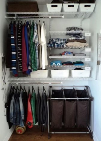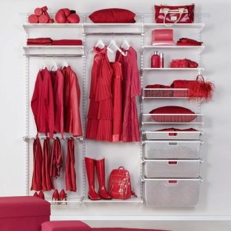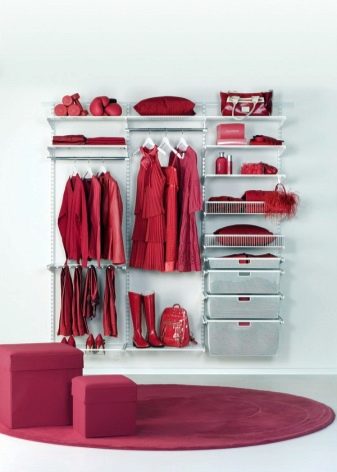- Клетъчен. Тази гардеробна система е компактна и универсална. Основната му характеристика са множеството рафтове и кошници от мрежа, които са прикрепени към стената. Основните предимства на системата са възможността да побере голям брой аксесоари, неограничени възможности за трансформация, усещането за безтегловност на конструкцията.