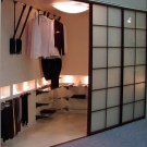 - Плъзгащи се. Системите имат плъзгащи се врати, изработени от различни материали. Най -популярният материал при производството на плъзгаща се гардеробна система е ПДЧ, което може да бъде украсено със стъкло, огледала и комбинирано с алуминий, MDF.