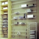 - Мрежеста система за съхранение на дрехи и обувки компактна и универсална. Плюсът е, че модулите са независими един от друг и могат да бъдат премахнати, ако е необходимо. Елементи от мрежестата система са прикрепени към стената с помощта на водачи и скоби. Системата е ефирна, лека, не пречи на свободното преминаване.