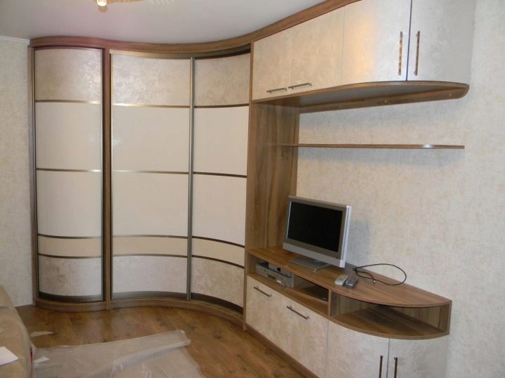По формата на профила ъглови гардероби най -често са правоъгълни и полукръгли. Струва си да разгледаме по -подробно втория вариант, който е най -рационален за малка стая..