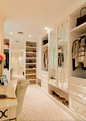Съблекалнята ви позволява да съхранявате дрехите на всички членове на семейството на едно място, без да използвате многобройни гардероби и рафтове, което дава повече свободно пространство в коридора и спалнята. Разликата му от просторен гардероб е, че това е отделна стая с огледала, интериорна декорация, врати. Ъгловата съблекалня е добра, защото може да се монтира на свободно място в спалнята и не изисква отделна стая. Това е приемлив вариант за малки апартаменти..