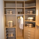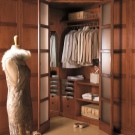 Ъглова съблекалня може да бъде организирана без никакви проблеми в спалнята, хола, коридора, детската стая и дори върху остъклена лоджия. В стаите ефективно използва ъглите, които са слепите зони на стаята. Семейство от 3-4 души може свободно да постави целия си гардероб на площ от 5-7 кв. м., докато все още ще има място за преобличане.