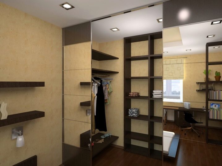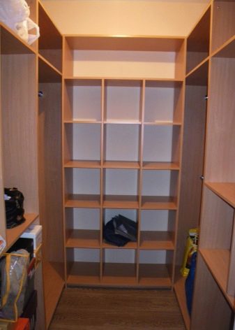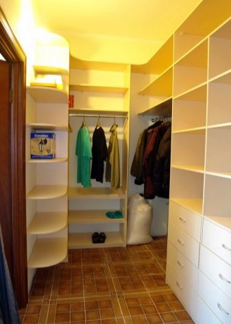 Тази опция е подходяща за всяка стая. Най -често нямат врати. В случай на килер от килера, за да го създадете, ще трябва да разрушите една от стените. Тази съблекалня обикновено е предназначена за един или двама души, тъй като може лесно да бъде разделена..