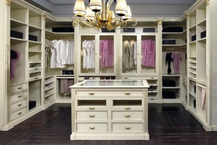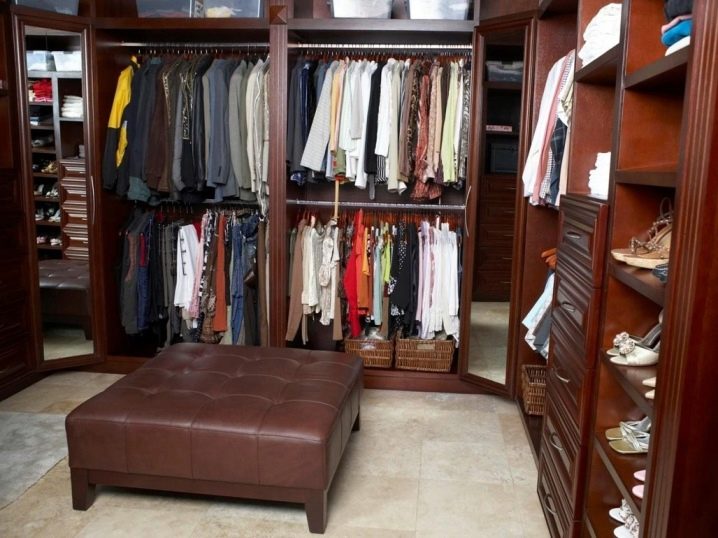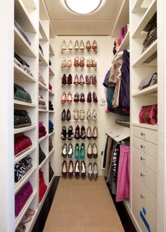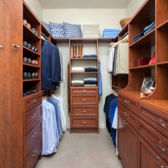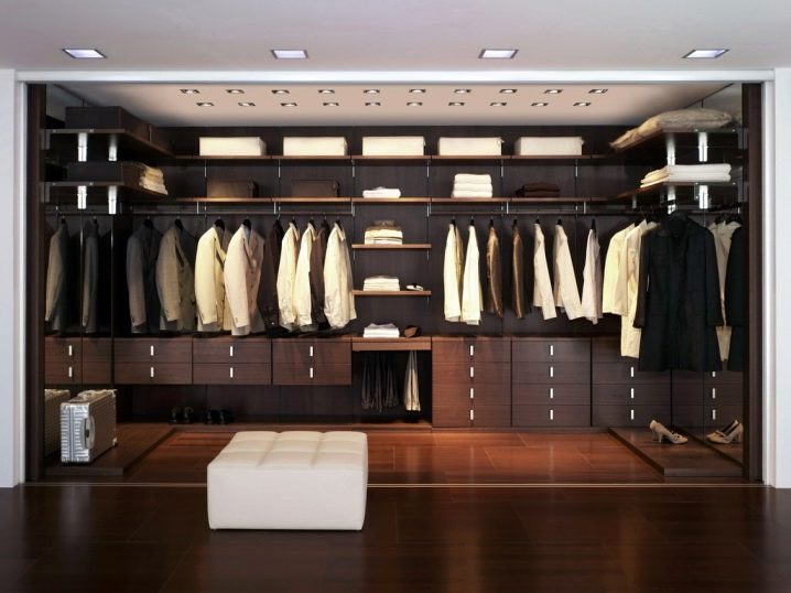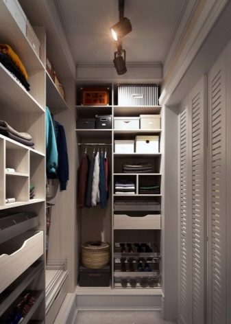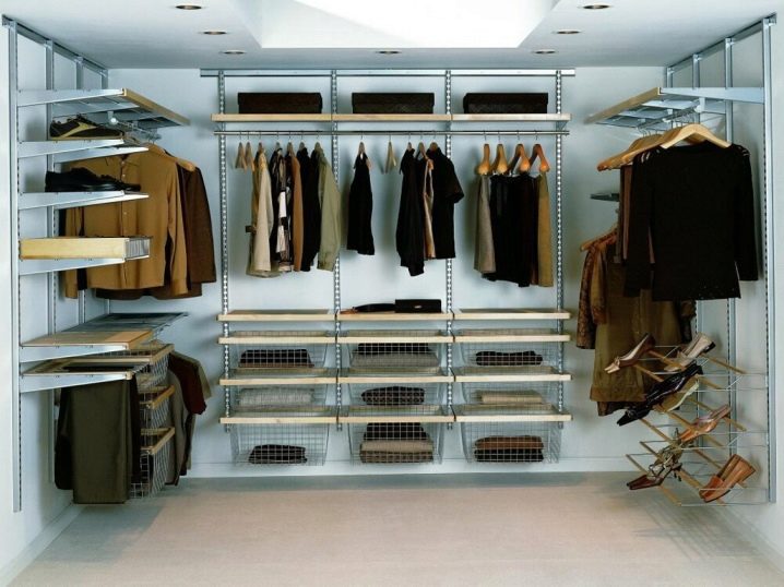 Такава съблекалня перфектно ще се справи със съхранението на абсолютно всички неща в къщата. Ето само някои от опциите за организиране на такава опция:
