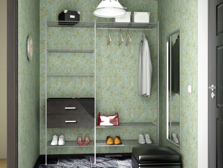 - Стилен гардероб от метална рамка. Изглежда дискретно и заема минимум място.