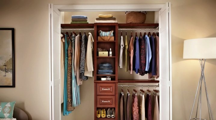 Тази част от гардероба е най -използваната. Обикновено се пълни с пръти, рафтове и всякакви чекмеджета. Пръчките са разположени както перпендикулярно, така и успоредно на стената. Всичко зависи от дълбочината на шкафа.