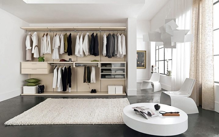 Но този тип съблекалня има значителни недостатъци. Основното е, че нещата трябва постоянно да се поддържат в перфектен ред, защото те са пред очите ви. Освен това в такава съблекалня нещата могат да абсорбират чужди миризми, особено ако живеете в студио..