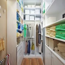 На първо място, използвайте цялото пространство на съблекалнята си. В допълнение към напречните греди ще бъде рационално да се използват рафтове в съблекалнята. Ако имате високи тавани, това ще бъде особено практично – стелажи и рафтове могат да бъдат разположени както отдолу, така и отгоре. Много е удобно да поставите всичките си сезонни артикули на горните рафтове..