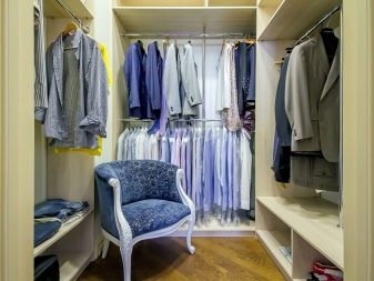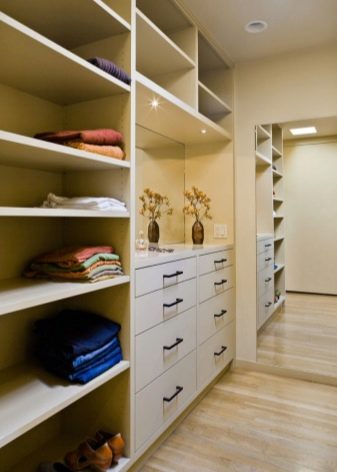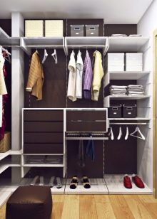 В случай на отворена съблекалня, всичките ви вещи са винаги под ръка. Освен това ви позволява да направите стаята визуално по -голяма. Това е много добро за малки апартаменти..