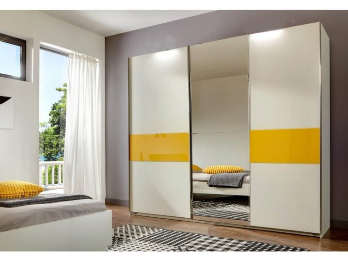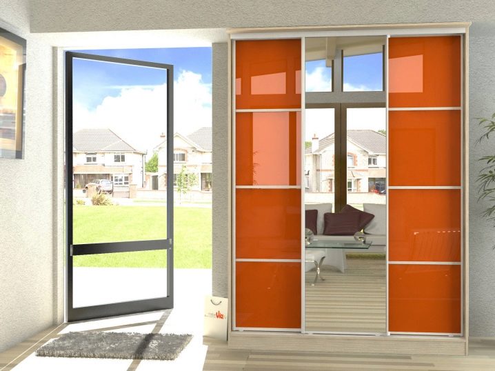 Огледалото като фасаден елемент е често срещано решение; огледалата могат да бъдат монтирани на една врата на шкафа или на всички, тоест визуално направете стъклото на шкафа. Стъклен плъзгащ се гардероб визуално ви позволява да разширите пространството, като огледало, придавайки на интериора модерен дизайн.