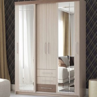 Важно е да се спазва общата стилистична посока в дизайна на стаята – изберете модела на шкафа и неговия цвят в съответствие с нюансите на останалата част от обзавеждането – легло, странични маси. В малка спалня направете фасадите на шкафа огледални – те визуално ще увеличат пространството; ако стаята е просторна, тогава можете да направите без огледала и да изберете завършването на вратите на отделението с дърво или стъкло.