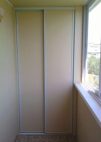 Поставянето на гардероб на балкона е чудесно решение; изберете здрави конструкции, които са устойчиви на температурни крайности и висока влажност. Рамката на плъзгащия се гардероб на балкона е по-добре да изберете метален или висококачествен ПДЧ; дървото може да не работи, защото е твърде капризно подложено на външни промени и едва ли изглежда подходящо да се постави скъпа конструкция на балкона.