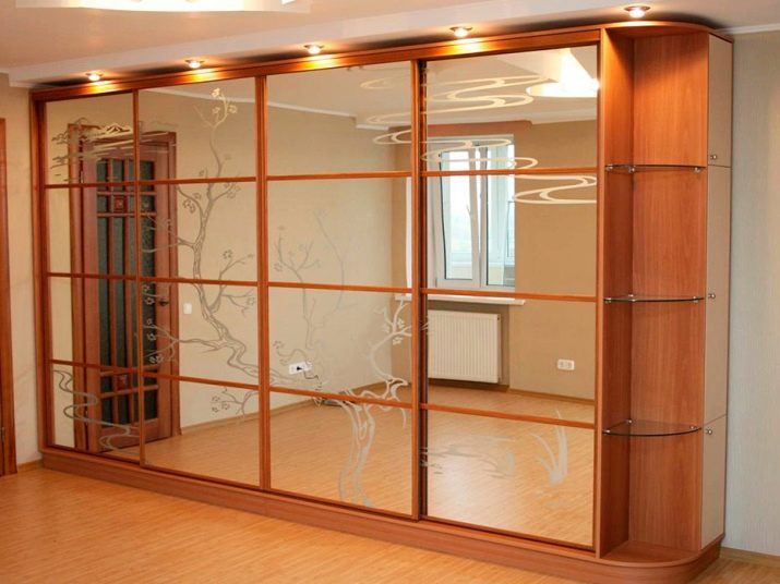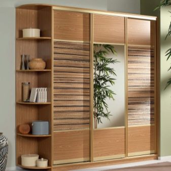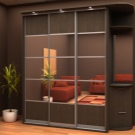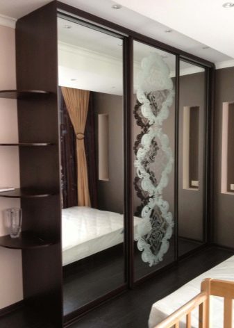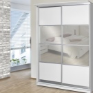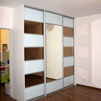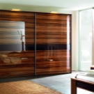 Огледалото като фасаден елемент е често срещано решение; огледалата могат да бъдат монтирани на една врата на шкафа или на всички, тоест визуално направете стъклото на шкафа. Стъклен плъзгащ се гардероб визуално ви позволява да разширите пространството, като огледало, придавайки на интериора модерен дизайн.