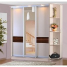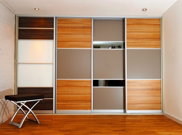 Фасадите на плъзгащия се гардероб са създадени от голямо разнообразие от материали, които също допринасят за цената на бъдещия дизайн..