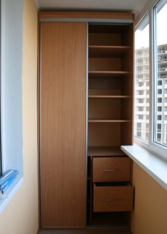 Поставянето на гардероб на балкона е чудесно решение; изберете здрави конструкции, които са устойчиви на температурни крайности и висока влажност. Рамката на плъзгащия се гардероб на балкона е по-добре да изберете метален или висококачествен ПДЧ; дървото може да не работи, защото е твърде капризно подложено на външни промени и едва ли изглежда подходящо да се постави скъпа конструкция на балкона.