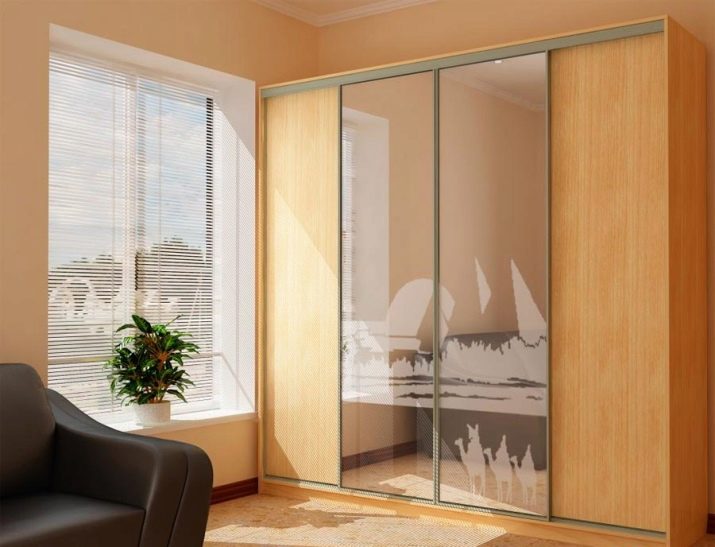 Популярна новост в дизайна на гардероба се превърна в прилагането на реалистично изображение върху фасадите на плъзгаща се конструкция: нощен град, пейзажи, натюрморти, морски пространства, градски пространства.