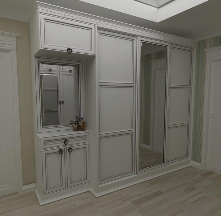 Декоративните предмети, предлагани от съвременните магазини, са представени в доста голям брой. Основният и незаменим елемент на декора за гардероб в класически стил е патина от златен или сребърен цвят, а по -нататъшните допълнения зависят от желанията и вкуса на клиента. Най -популярните декоративни елементи са огледалата или огледалните панели, които от своя страна също могат да бъдат украсени с дърворезба или други елементи. Обикновено огледалата се правят за цялата част на една или две фасади, но в класическия вариант някои предпочитат да им придадат по -красиви и кокетни форми. Моделите с огледала правят стаята по -широка и придават дори на голям гардероб по -малък вид.