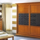 Малко по -рядко се срещат плъзгащи гардероби с вложки от ратан и естествена или изкуствена кожа. Такива шкафове изглеждат доста оригинални..