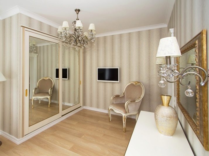 След определяне на външния вид, формата, както и вътрешното запълване и цвета на шкафа, започва една от най -трудните процедури по избор. Доста е трудно да се избере един вариант на декор от многото представени, тъй като всеки е добър по свой начин. Някои хора предпочитат да комбинират няколко опции, когато най -накрая не могат да решат коя им харесва. Гардеробите също са декорирани доста сдържано, но в същото време много красиво, за да подчертаят богатството и красотата на тази стилова посока..