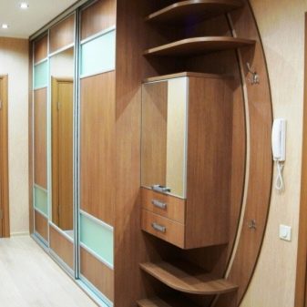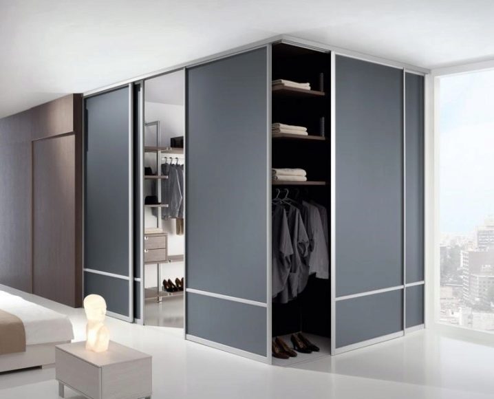 Според метода на монтаж, плъзгащите гардероби са вградени (едната страна в съседство със стената или пода) и шкаф (имат една конструкция без опора). Има различни форми: те са прави, ъглови и радиусни. Правите продукти са подходящи за спални и дневни, докато ъгловият и радиусният дизайн изглеждат най -добре в коридора.