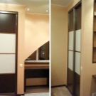 - шкафът е направен за определено място в стаята, следователно всеки елемент трябва да бъде измерен и отрязан според размера на отвора. Не всяка стена има прав ъгъл, така че частите не могат да бъдат подготвени предварително.