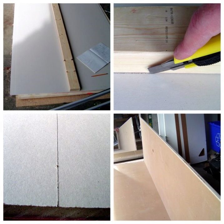 След като сте направили обшивката на цялата рамка, ангажирайте се със залепване на фугите и шевовете на шкафа. За тези цели се продават специална мрежа и лента. Трябва също така да залепите перфорираните ъгли и да замажете повърхността.