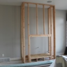 Ако имате допълнително осветление във вашия проект, направете окабеляването, преди да започнете да работите върху скелета на рамката. За изграждането на скелета е подходящ метален профил, но ако върху шкафа ще действа значително натоварване, изберете дървена греда. Дървеният материал трябва да бъде висококачествен и добре изсушен. В противен случай след изсушаване цялата структура ще започне да се деформира..