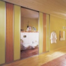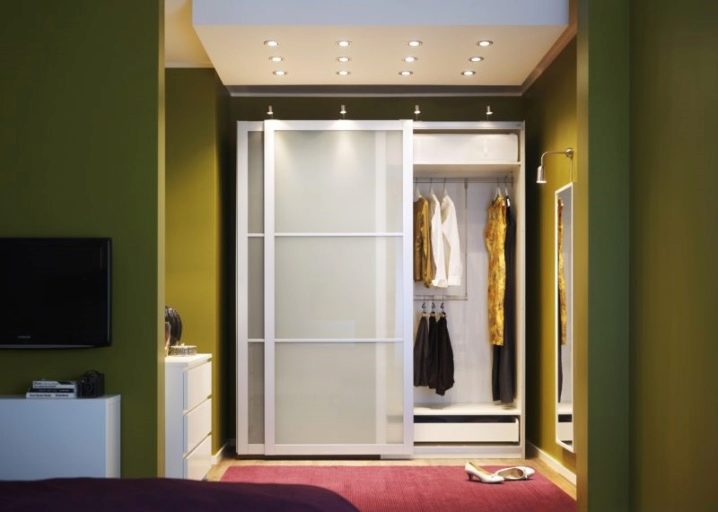 Можете да използвате пода и тавана като дъното и горната част на шкафа. В този случай релсите на вратите ще бъдат директно прикрепени. Няма ограничения за този вид мебели, така че е популярен поради своята универсалност..