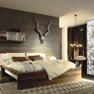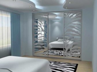 За любителите на екзотични, анималистични варианти са подходящи щампи с леопард, зебра, жираф, влечуги. Ако говорим за дизайна на фитнес зала, стая за тренировки, тогава можете да използвате камуфлажните цветове на комплекта мебели. Всяка огледална стъклена повърхност ще се превърне в надеждно платно за създаване на невероятни художествени композиции.