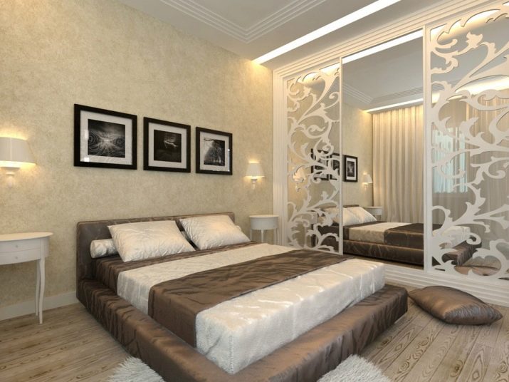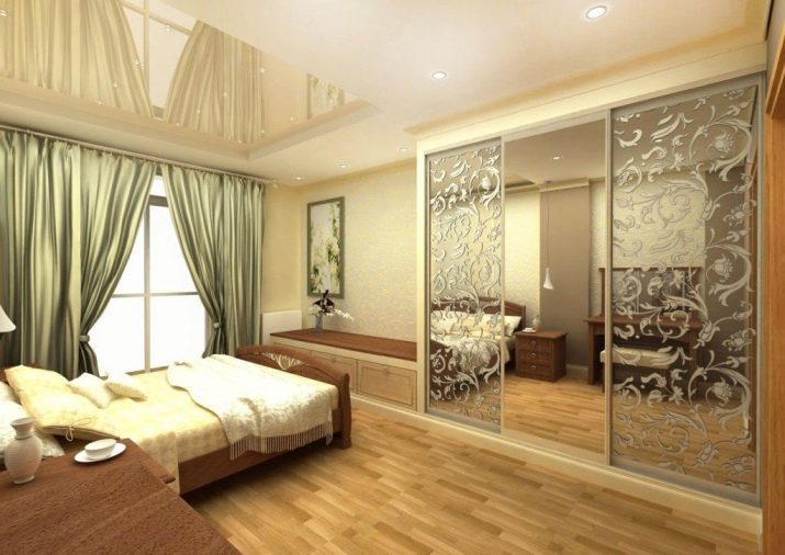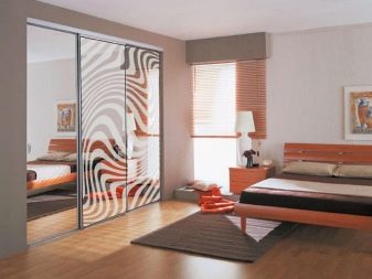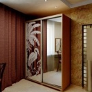 Ако се стремите към себеизразяване, тогава можете да използвате свои собствени скици, интересни панели, които хармонично украсяват спалнята. Това може да бъде и илюзия за качество върху всеки материал с равна повърхност. Картината може да имитира рисуване върху метал, хартия, текстура на плат, придавайки мистерия и интрига. Много хора предпочитат напълно необичаен вариант за декориране на вратите на гардероб: създаване на стилен портрет в духа на 40 -те години. отминала епоха. Това могат да бъдат и вашите силуети, успешно “замаскирани” с помощта на кварцов пясък, ефективна работа на майстора.