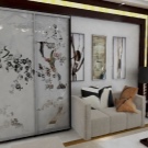Плъзгащ се гардероб с пясъкоструйна шарка