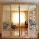 Един от най -популярните методи за декориране на огледало за гардероб е методът Амалгама. В този случай шарката се прилага от вътрешната страна на конструкцията, избита по отразяващия слой на огледалото.. Ако използвате необичайно (точково или LED осветление) на гърба на шкафа, тогава ще постигнете невероятен ефект от леко заглушено осветяване на изображението..