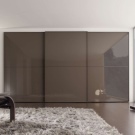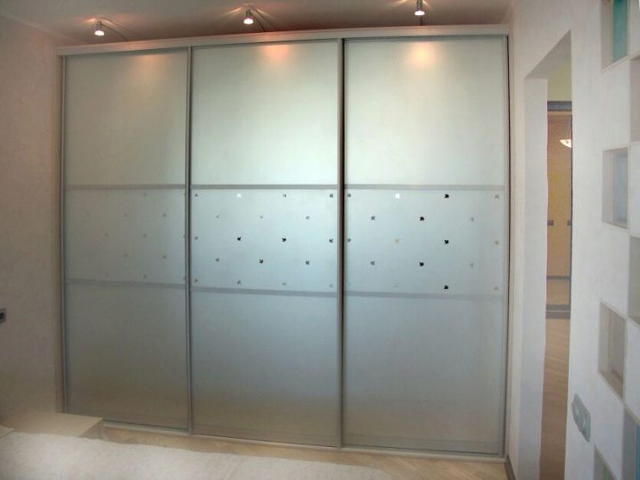 Матираното стъкло е най -дискретната версия на фасадния дизайн; добавете външно осветление към шкафа – получавате модерен и практичен вид за хола или спалнята.