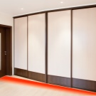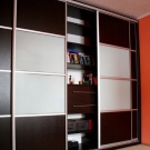 - дърво: масивното дърво рядко се използва за производството на фасади на плъзгащи се гардероби, тъй като е тежко и скъпо; често предпочитат MDF или ПДЧ панели – по -евтини и дълготрайни елементи. Разнообразието от цветове и текстури ви позволява да изберете материала въз основа на желанията на клиента, така че гардеробът да се комбинира с общия интериор и да бъде неговото продължение.