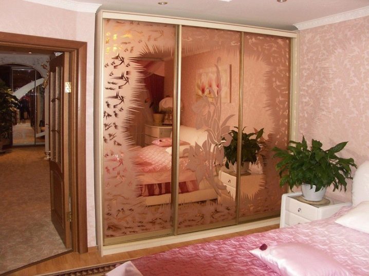 Ако искате да създадете по -оригинален интериор благодарение на гардероба, използвайте огледала в центъра на шкафа и напълнете горната и долната му част с друг материал – дърво, пластмасов панел, витражи или стъкло. Пясъкоструенето върху огледалата ви позволява да внесете „жар“ във вътрешността на гардероба и често, благодарение на специална технология, върху огледалото е изобразен модел или орнамент, естествени мотиви.