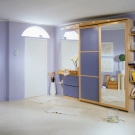 - Полувградените модели шкафове са нещо средно между вградените и шкафните модели на плъзгащи се гардероби. Тези модели имат малко разлики от вградените опции, но тяхната отличителна черта е липсата на някакъв вид структурна част, например може да нямат горна лента или странична стена. Плъзгащите се гардероби от този тип могат да създадат трудности, когато се монтират в коридор или коридор, тъй като те трябва да бъдат много точно приспособени към тавана и пода, поставяйки ги до стената.