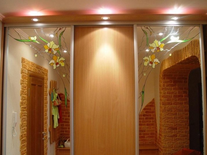 Разбира се, гардеробите от естествени материали и „естествени“ нюанси не са евтини, но те ще бъдат отлична декорация за всеки коридор. Ако гардеробът ви предполага наличието на огледала, тогава повърхността може да бъде разнообразна с различни витражи според вашия вкус..