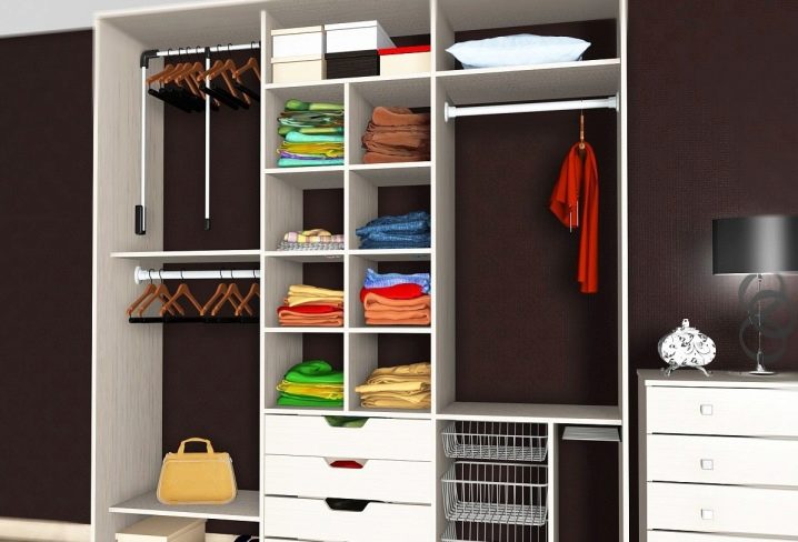 Интериорът на гардероба е също толкова важен, колкото и външният дизайн. Необходимо е компетентно да се обмисли тази част. Разстоянието между рафтовете трябва да бъде достатъчно голямо, така че при необходимост върху тях да могат да се поставят книги и снимки. За чекмеджетата си струва да изберете добри затварящи устройства, за да можете лесно да отваряте и затваряте. Стрелите могат да бъдат разположени както на достатъчна височина, така и отдолу, в зависимост от това за какво са.