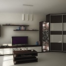 За привържениците на всичко модерно, ново и в същото време сдържано, хай-тек стил е подходящ. Необичайно дизайнерско решение ще бъде черен вграден гардероб. Плъзгащите се врати приличат на листове хартия, покрити от неизвестен автор или влюбен млад мъж. В такъв оригинален дизайн има скрита тайна, има някаква загадка, която трябва да бъде разгадана. В такава всекидневна ще бъде приятно да помислите за живота или да прекарате романтична вечер..