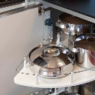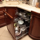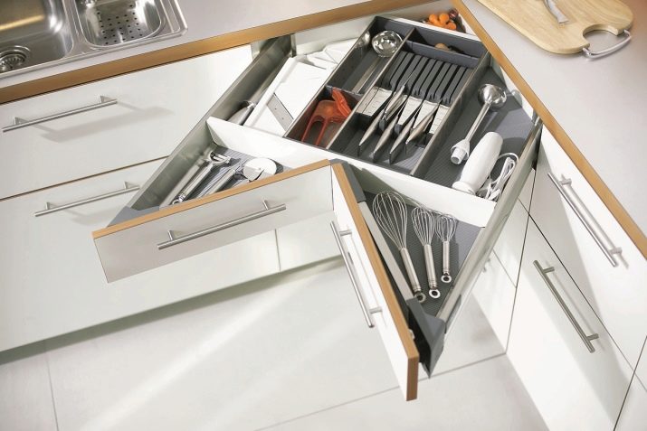 Ъгловите системи за издърпване са добър вариант за спестяване на място в кухнята. Те се използват главно за обзавеждане на малки пространства..