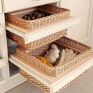 Издърпващите се кошници са функционални и просторни опции. Особеността на тези видове е, че се използват за продукти, които се нуждаят от вентилация..