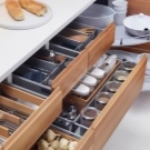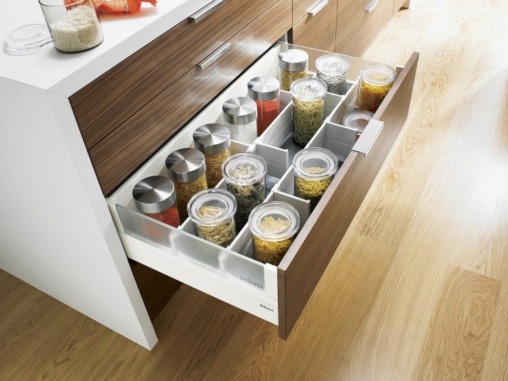 Когато избирате прибираща се система, трябва да обърнете внимание на моделите VSA. Тези структури са представени под формата на колони и са предназначени за съхранение на различни бутилки и кутии. Предимствата на системите са просторност, надеждност и дълготрайност. Дизайнът ще бъде идеалният вариант за създаване на модерен кухненски интериор.